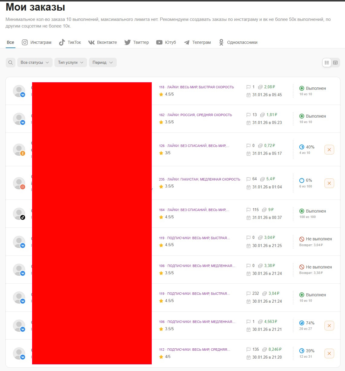 Давно приметила likehub. Раньше быстро работал (приемлемо), сейчас стало значительно медленней. Из основных плюсов - всегда видно сколько накрутилось, и сколько осталось, потому что они делают всё сами (свои услуги по продвижению, как отвечают идут с разных бирж заданий), чем собственно меня этот сервис изначально и зацепил. Поддержка не всегда отвечает сразу, но проблемы с ним возникают не так часто, как с другими сервисами с которыми работала. В целом рекомендую